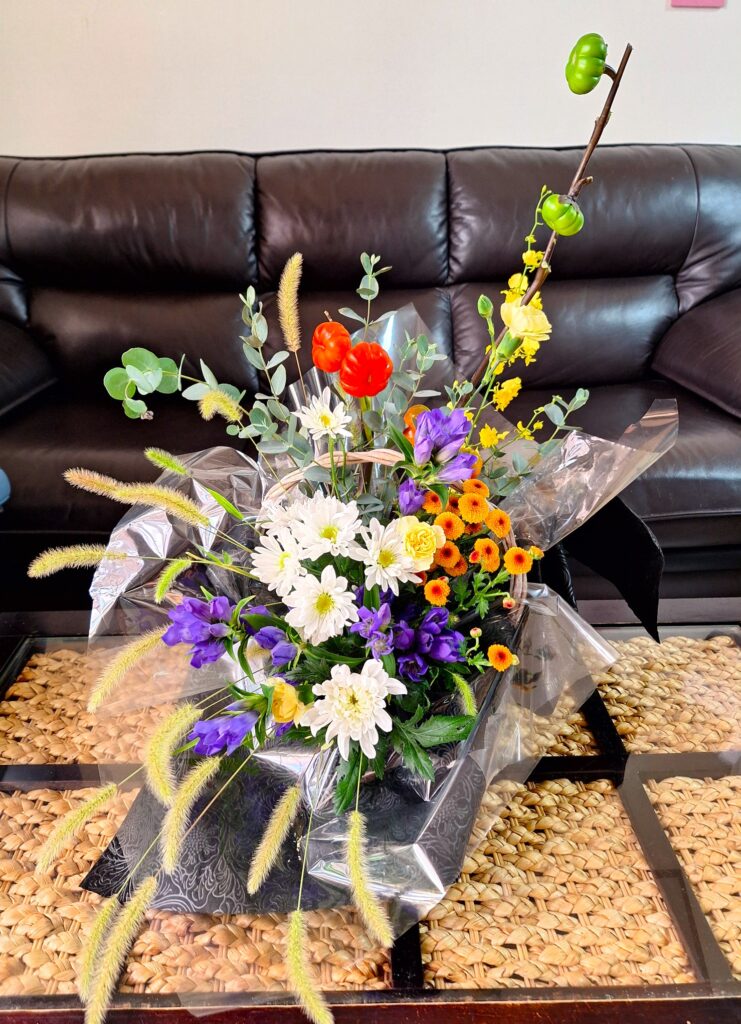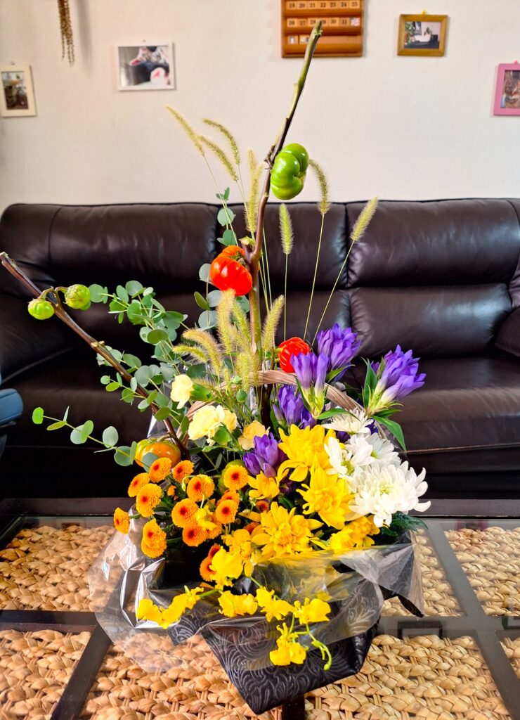 2025-10-20 生花レッスン「秋のアレンジメント」 ようやく秋めいてきましたね。短い秋を楽しまなくっちゃ。 <生徒作品> Home › New!オーナーズブログ › 生花レッスン「秋のアレンジメント」 関連記事 今日は「丑の日」 長浜盆梅展 2025年 十日戎 ミモザのスワッグ 十日戎でお参り 「有馬温泉」日帰り温泉