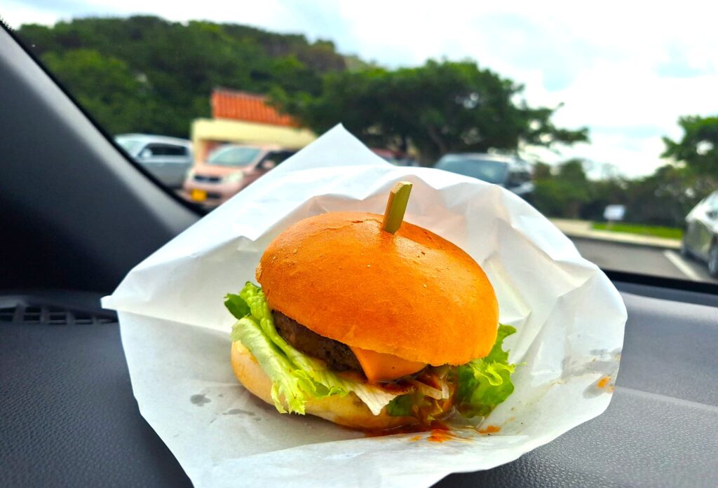 あまりにお腹がすいたので、ヤギさんのいるカフェでハンバーガーをget!