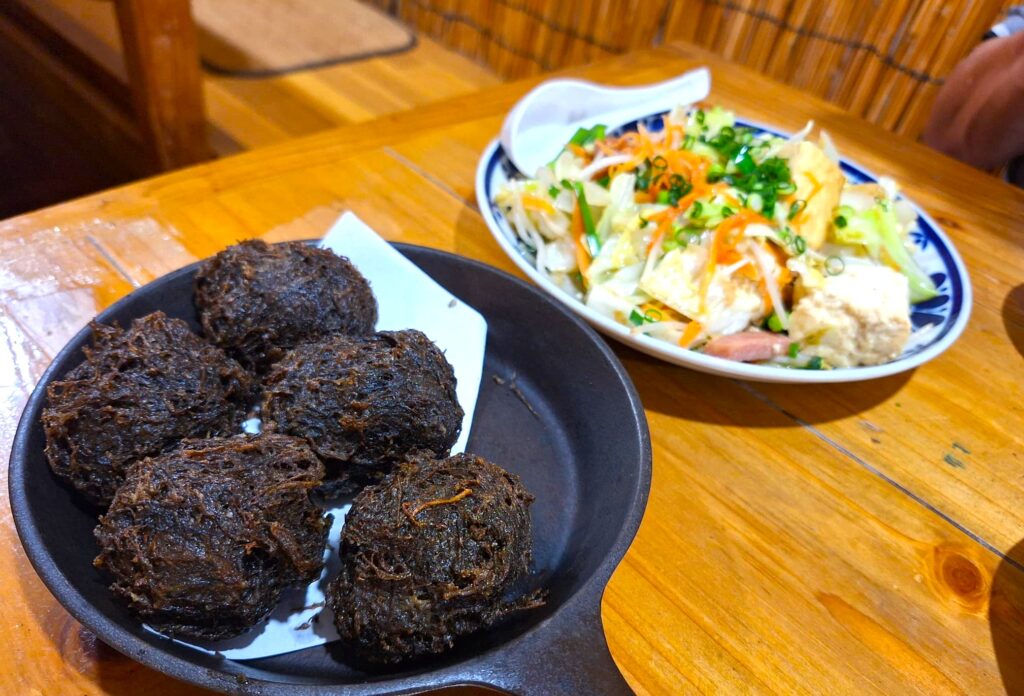 夕飯は、「石垣牛のにぎり」「モズクの天ぷら」「お豆腐のチャンプル」・・・。